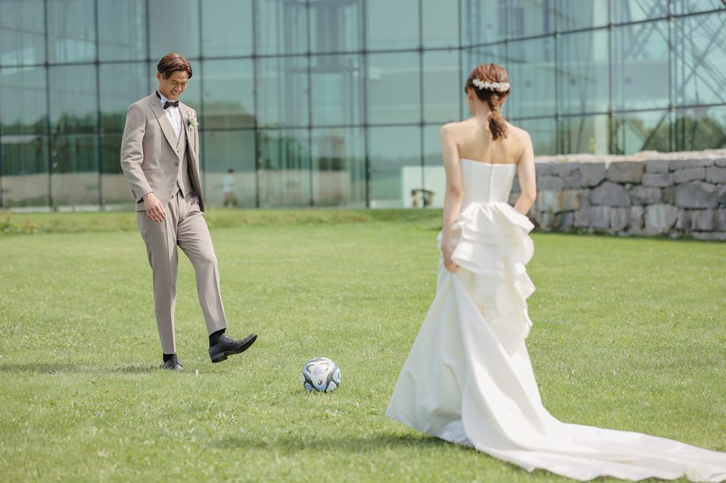 北海道らしいロケーションと、サッカーを愛する人にとって憧れのピッチで、おふたりの大切な瞬間を記念に残されました。